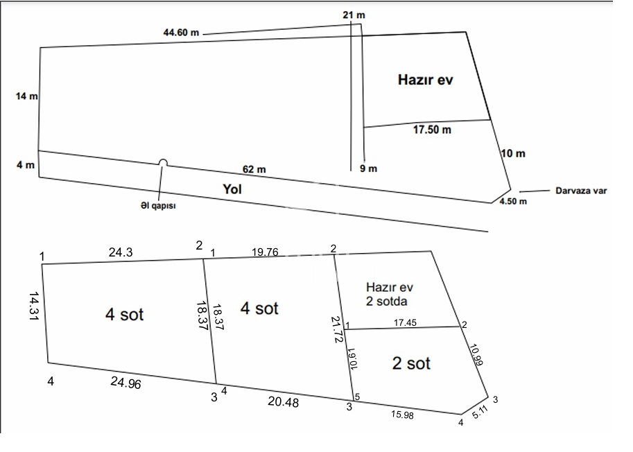 Ünvan: Qala qəsəbəsi, magistral yoldan 50 m məsafədə. Kod: 4459